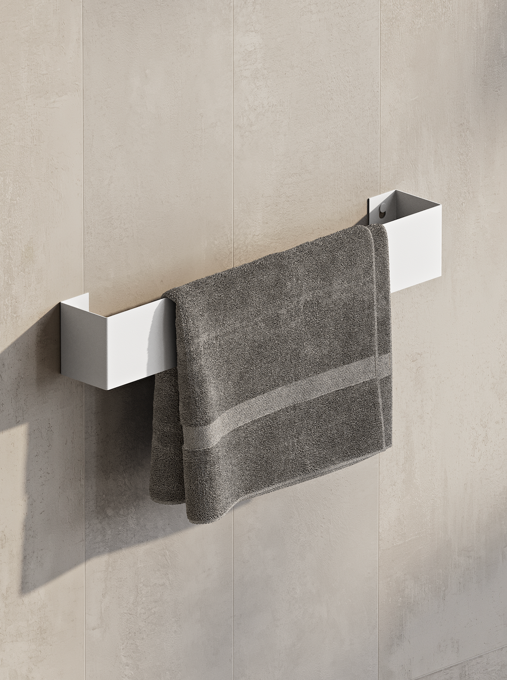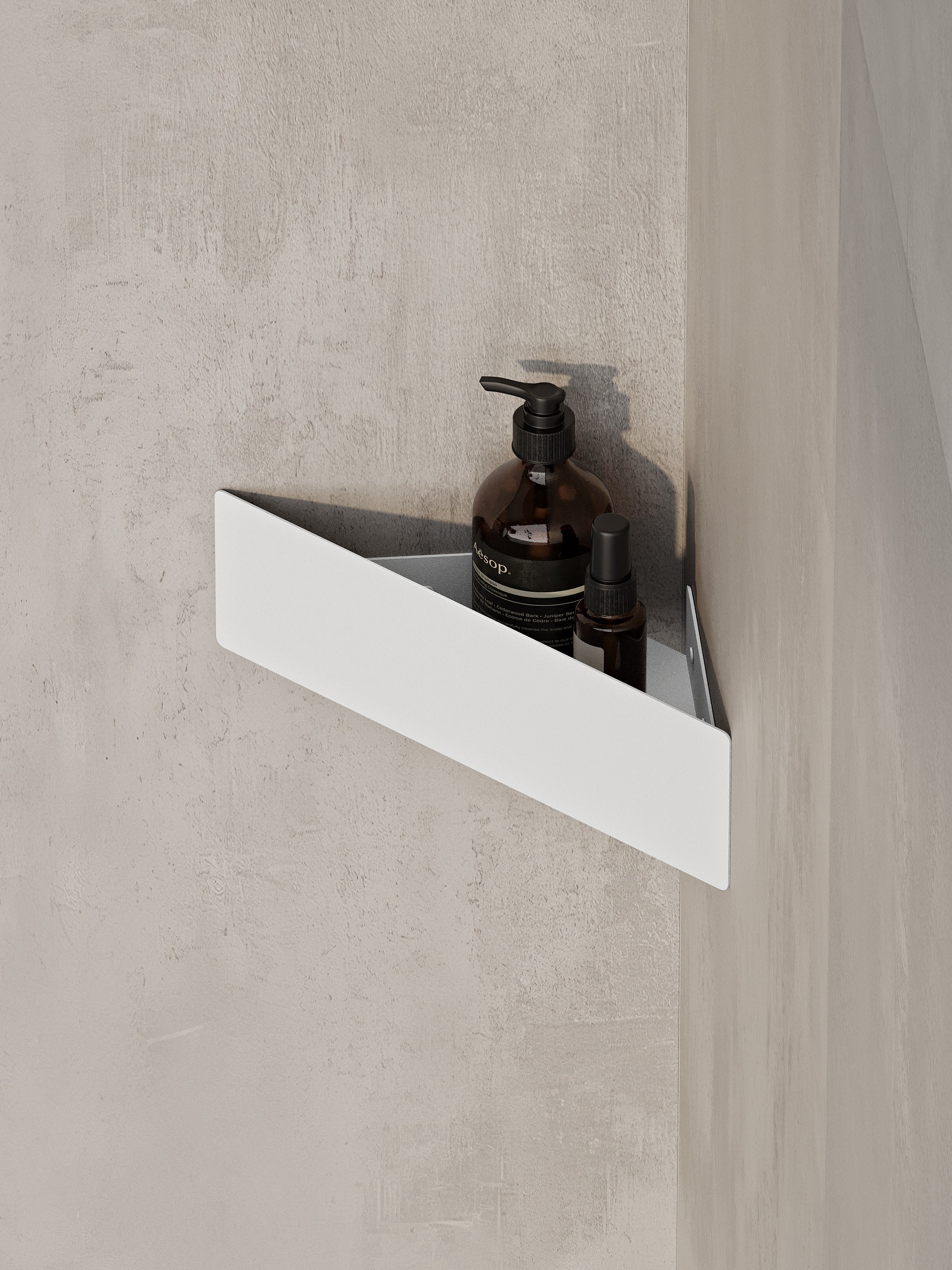 Questo ripiano verticale in metallo è progettato per conferire struttura e calma al tuo bagno, tenendo tutto a portata di mano e lontano dal pavimento.