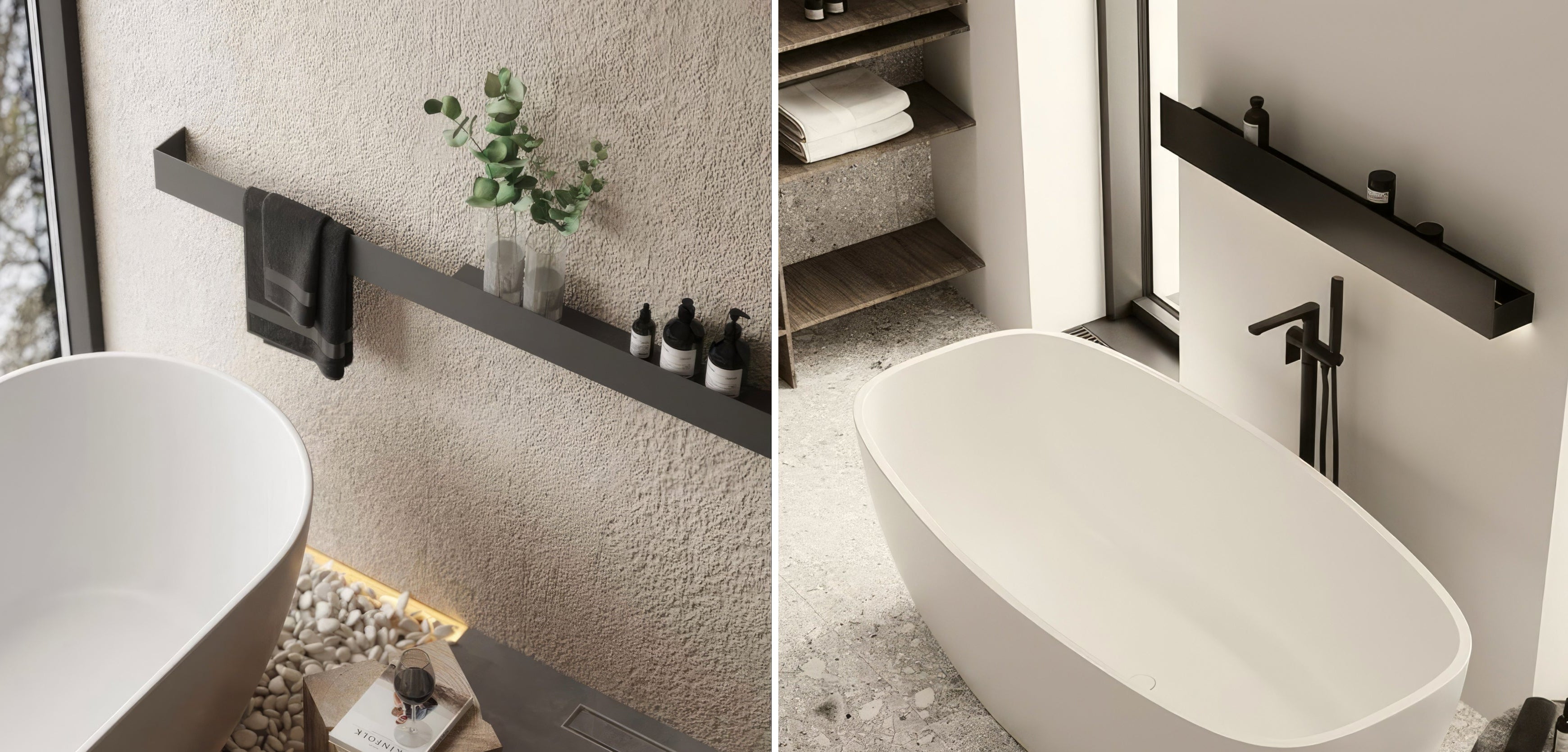 Ci assicuriamo che questi scaffali si adattino armoniosamente all'arredamento del tuo bagno 🫶